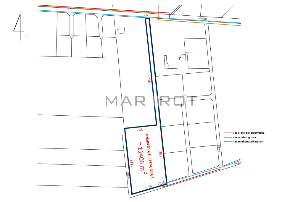 kalkulator Cena za mkw 26,3 PLN mkw Powierzchnia 11406.00 m2 Media - prąd TAK Opis