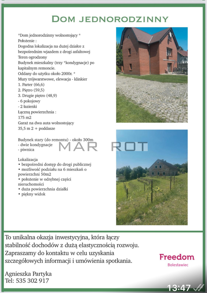Biuro nieruchomości Freedom przedstawia niepowtarzalną nieruchomość w samym centrum SZPROTAWY !!!!