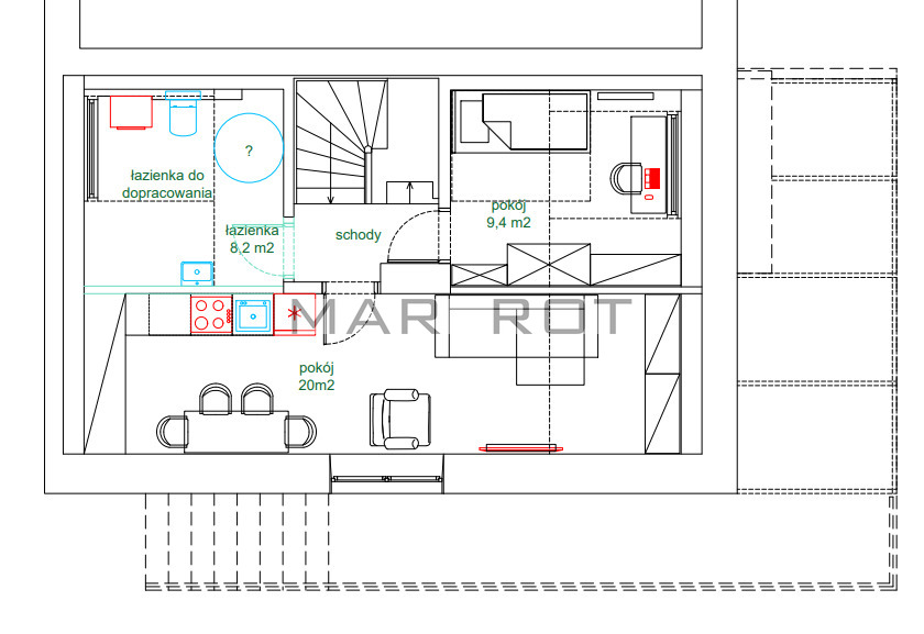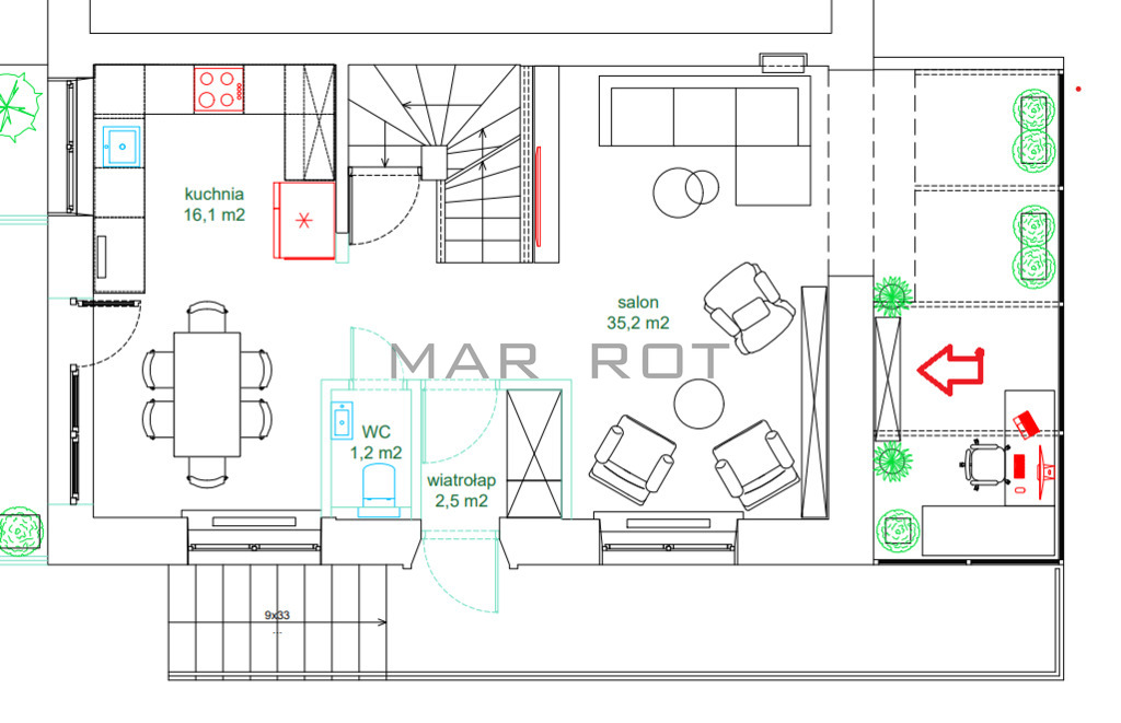 Dodatkowe informacje Okna wychodzą na wschód, południe i zachód, dzięki czemu dom jest bardzo dobrze doświetlony.