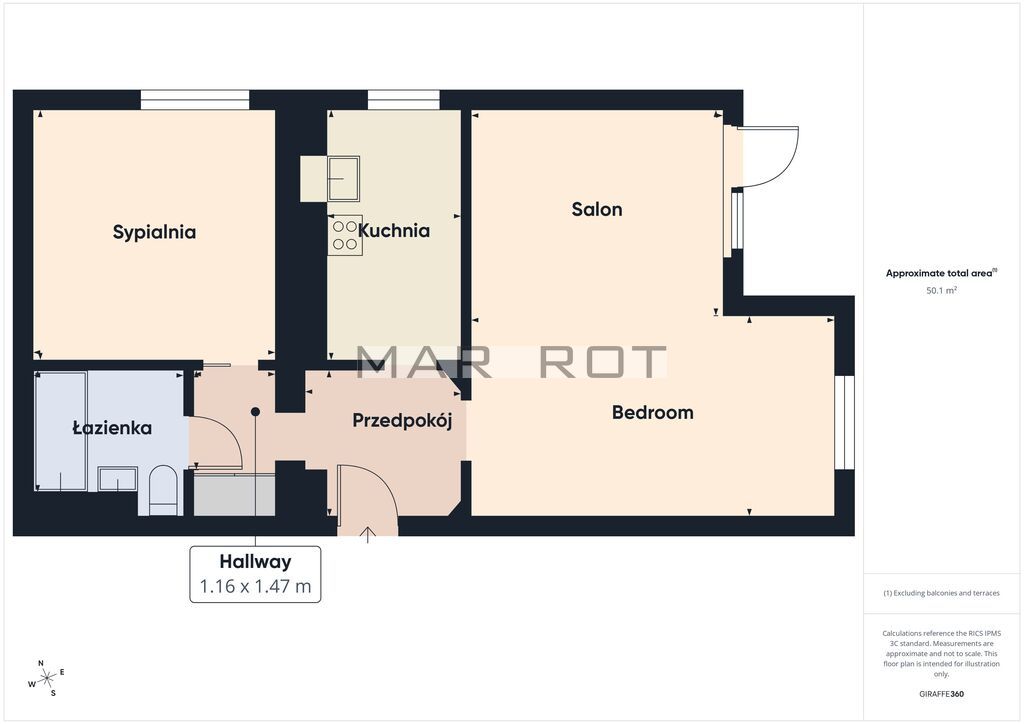 przestronnego salonu o pow. 23,1 m2 z wyjściem na loggię (ok. 6 m2),