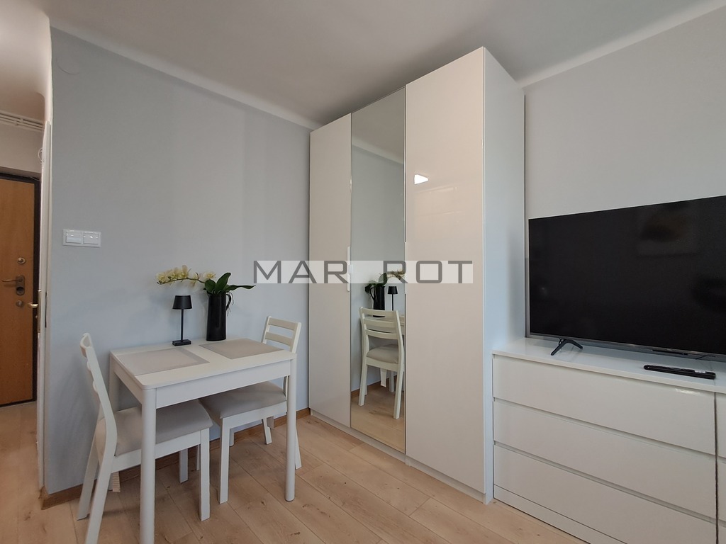 Do wynajęcia kawalerka 17 m2 na 1. piętrze, po remoncie, z nowymi meblami i sprzętem. Bardzo dobra lokalizacja, blisko Lotniska Chopina.