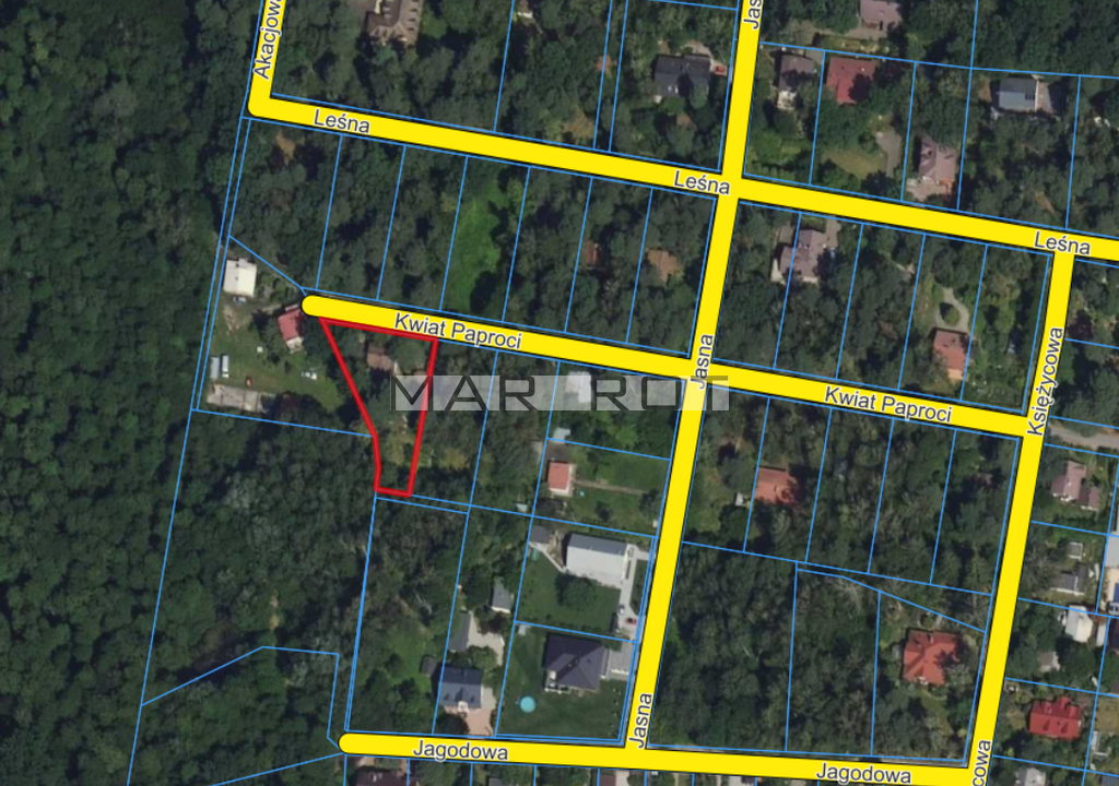 Na sprzedaż działka o powierzchni 984 m2, położona przy kameralnej ulicy Kwiat Paproci, w jednej z najbardziej cenionych części Zalesia Górnego.