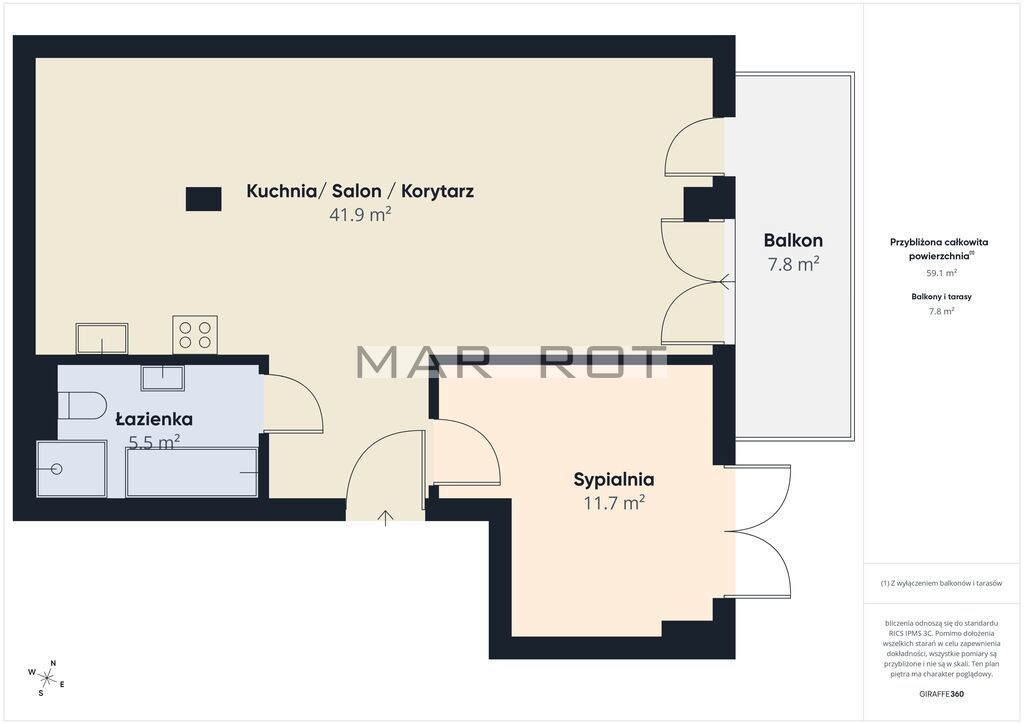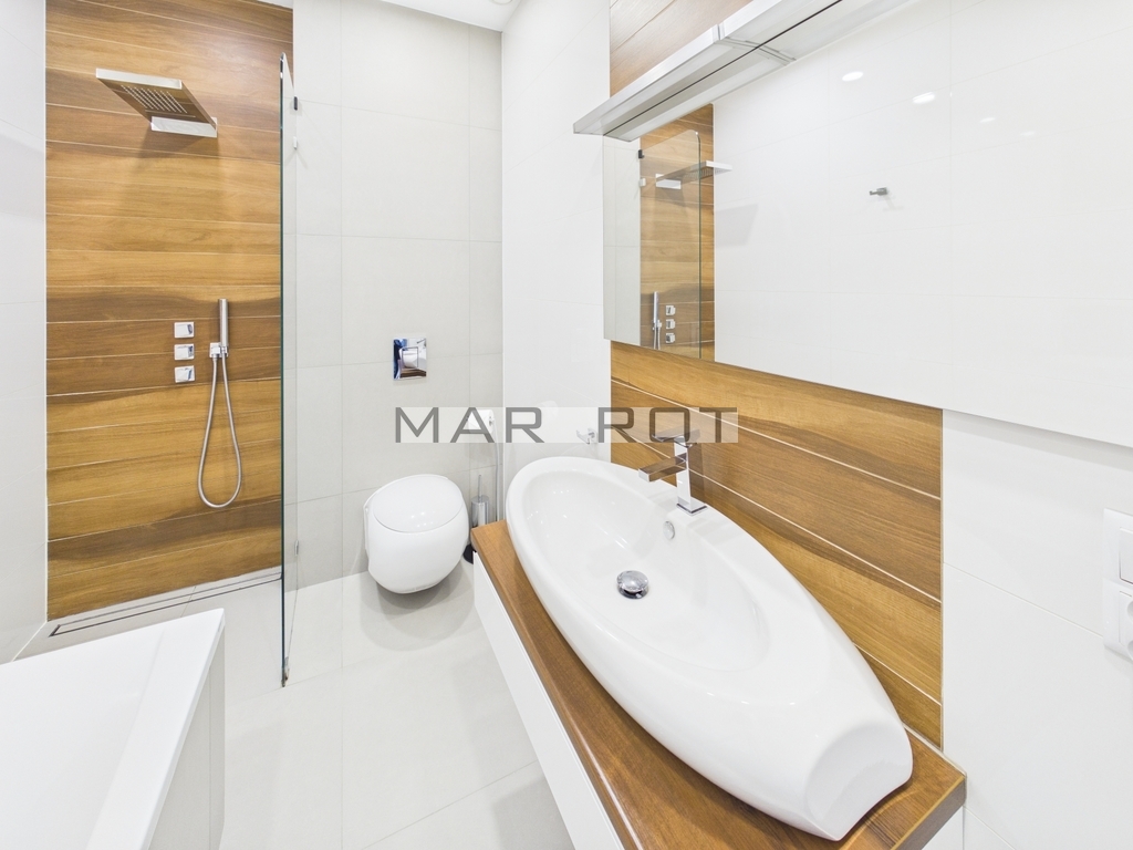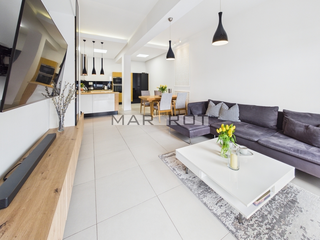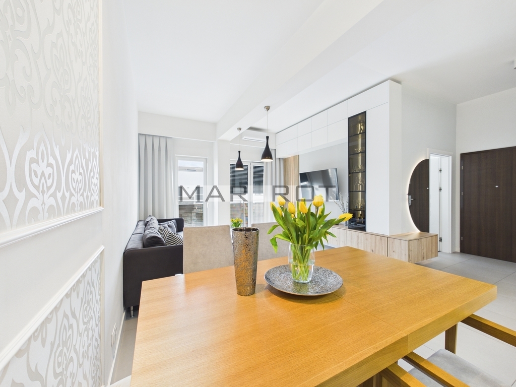 Każdy pokój jest w pełni wyposażony w wysokiej klasy sprzęty i meble, tworząc spójną, nowoczesną całość. Przestronny salon, funkcjonalna kuchnia i komfortowa sypialnia tworzą układ idealny zarówno dla pary, jak i wymagającego singla. Wszystko, czego potrzebujesz na co dzień - od świeżego pieczywa z lokalnej piekarni po opiekę medyczną - znajduje się w zasięgu krótkiego spaceru.